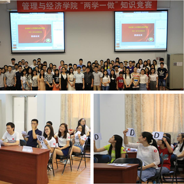 为强化党员自学效果,学院分别针对本科生和研究生党员举办“学两会明党史”、“两学一做”知识竞赛活动,活动充分调动了学生党员学党章党规、学系列讲话的热情,加强了学生党员爱国、爱党、爱校的责任意识。教工党员也积极认真完成了“党章党规在我心中”知识测试及竞赛活动,参与率近100%,很多党员老师取得满分的好成绩,党员教师纷纷表示在参与学习及答题过程中强化了自主学习的效果。
