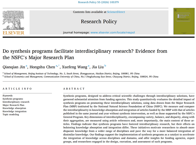 近日,北京理工大学管理学院博士生金茜茜、陈虹枢副教授(通讯作者)、汪雪锋教授和中国传媒大学刘佳教授在管理学国际顶级期刊Research...